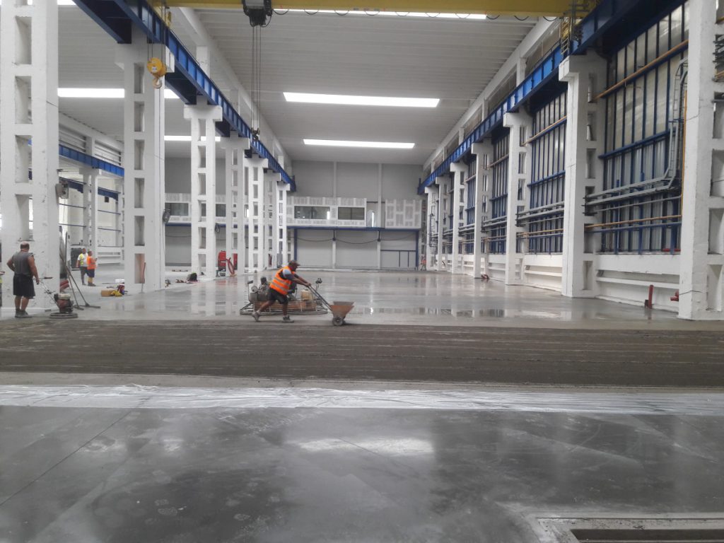 - povrch podlahy je rovnán plovoucí vibrační latí a po časovém odstupu strojně hlazen s aplikací vsypu